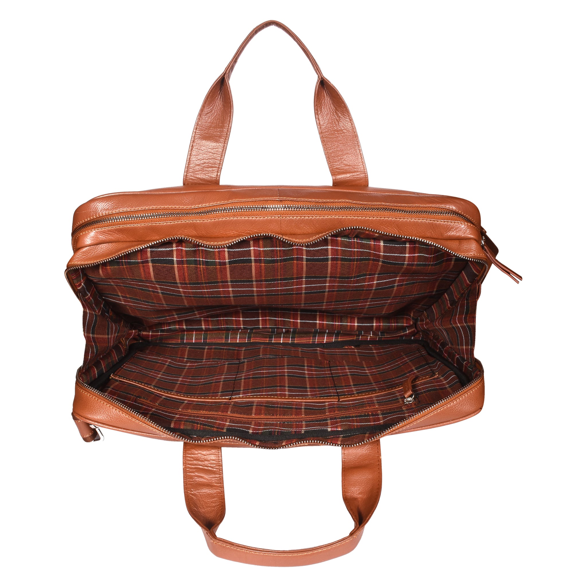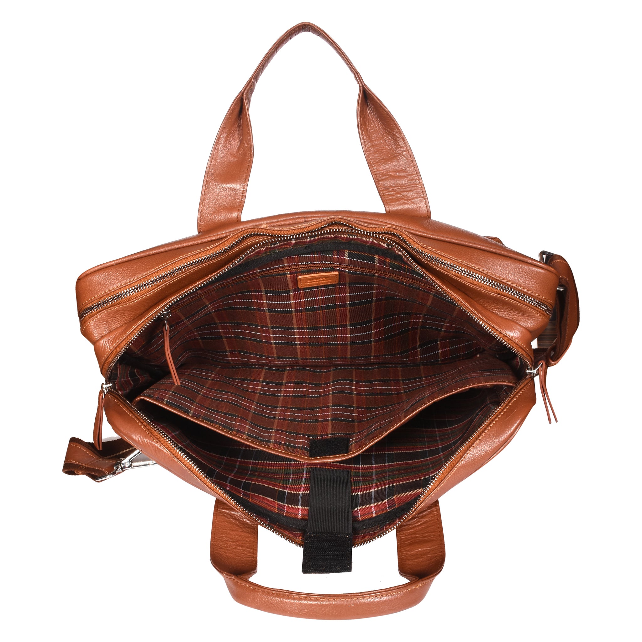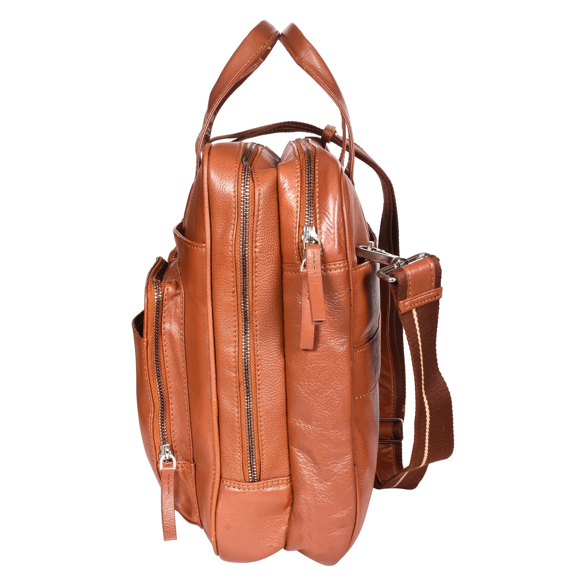 Designed with 2 spacious zip compartments and a 17-inch padded laptop sleeve with Velcro closure, it securely carries your laptop and work essentials. Multiple internal and external pockets help you stay organized, while nickel metal fittings and leather pullers add a premium finish.