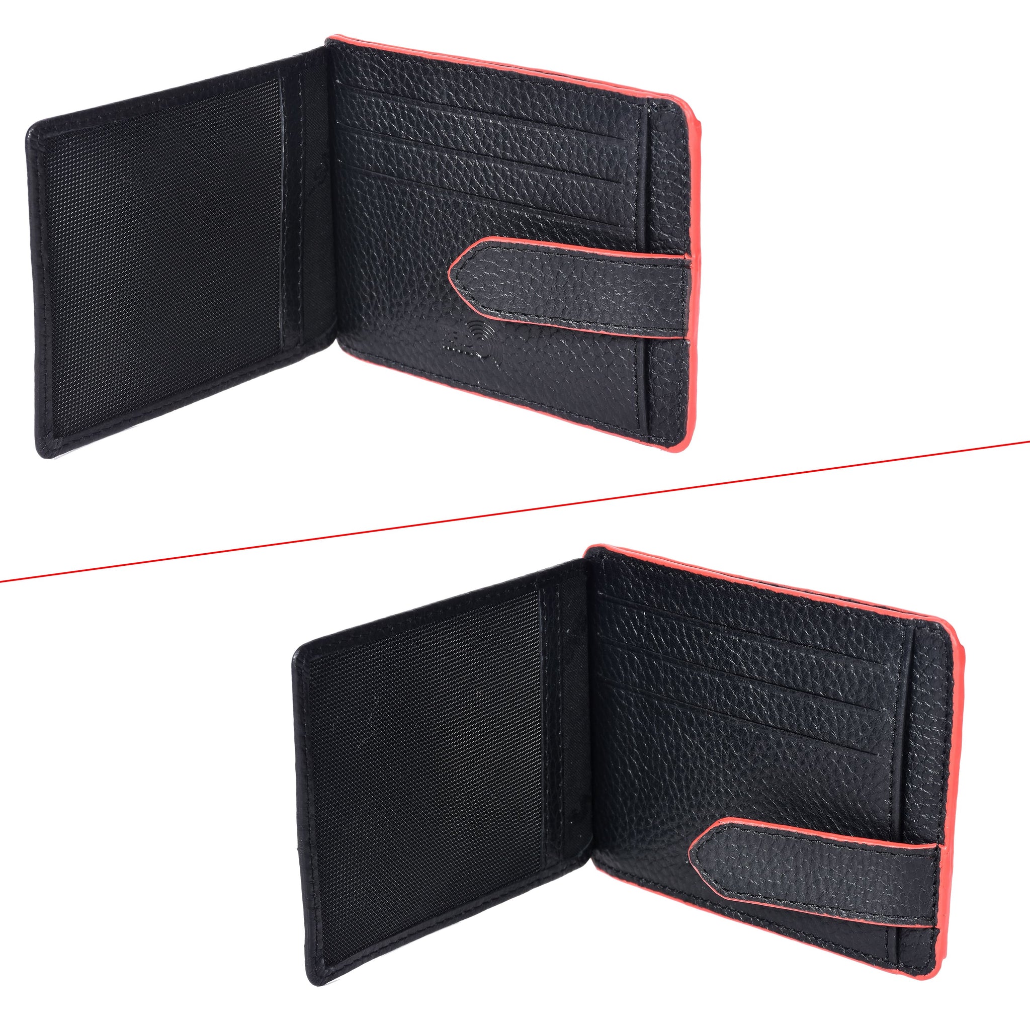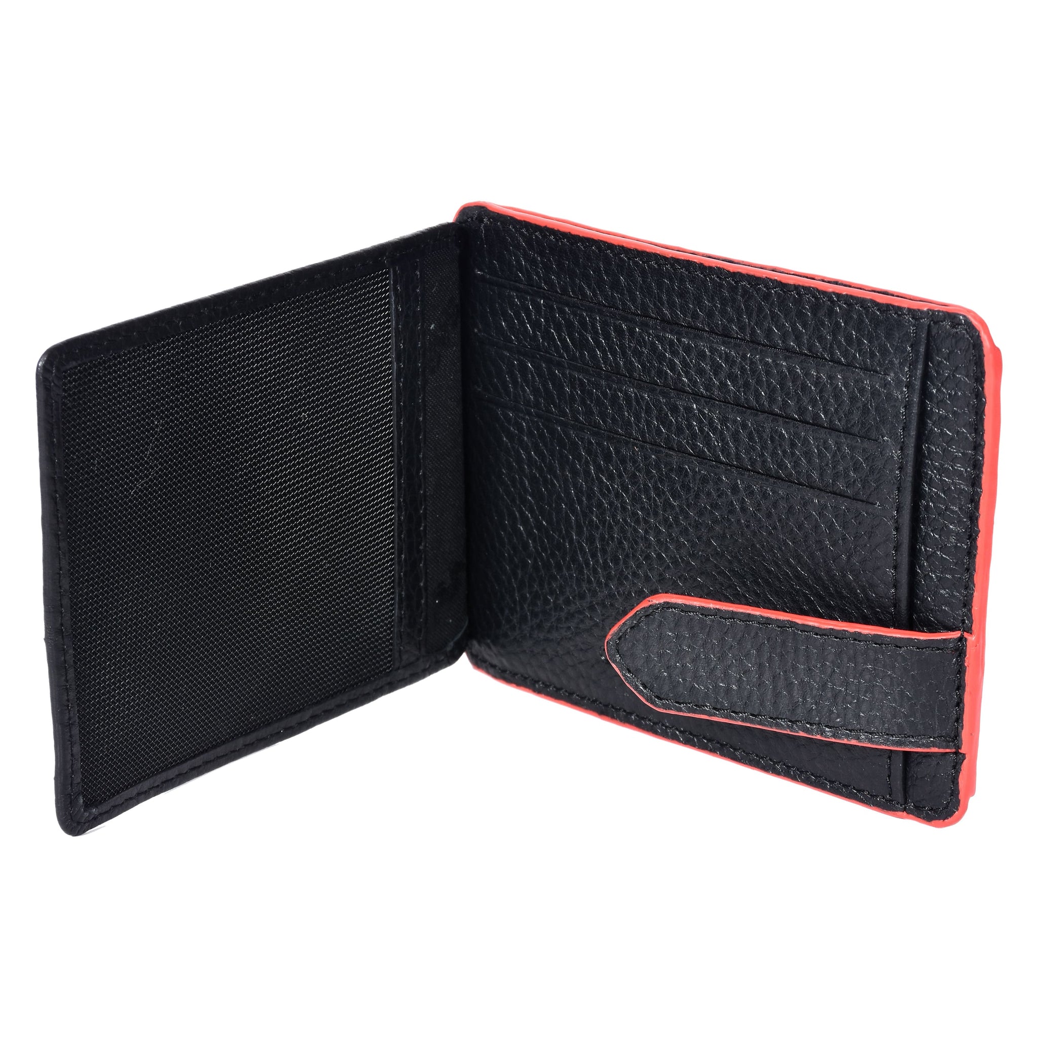 Upgrade your everyday carry with this premium Sassora Genuine Leather RFID Card Holder Wallet. Crafted from high-quality genuine leather, this wallet combines durability with a sleek, modern design. The black textured finish with elegant red accents gives it a stylish and sophisticated look.