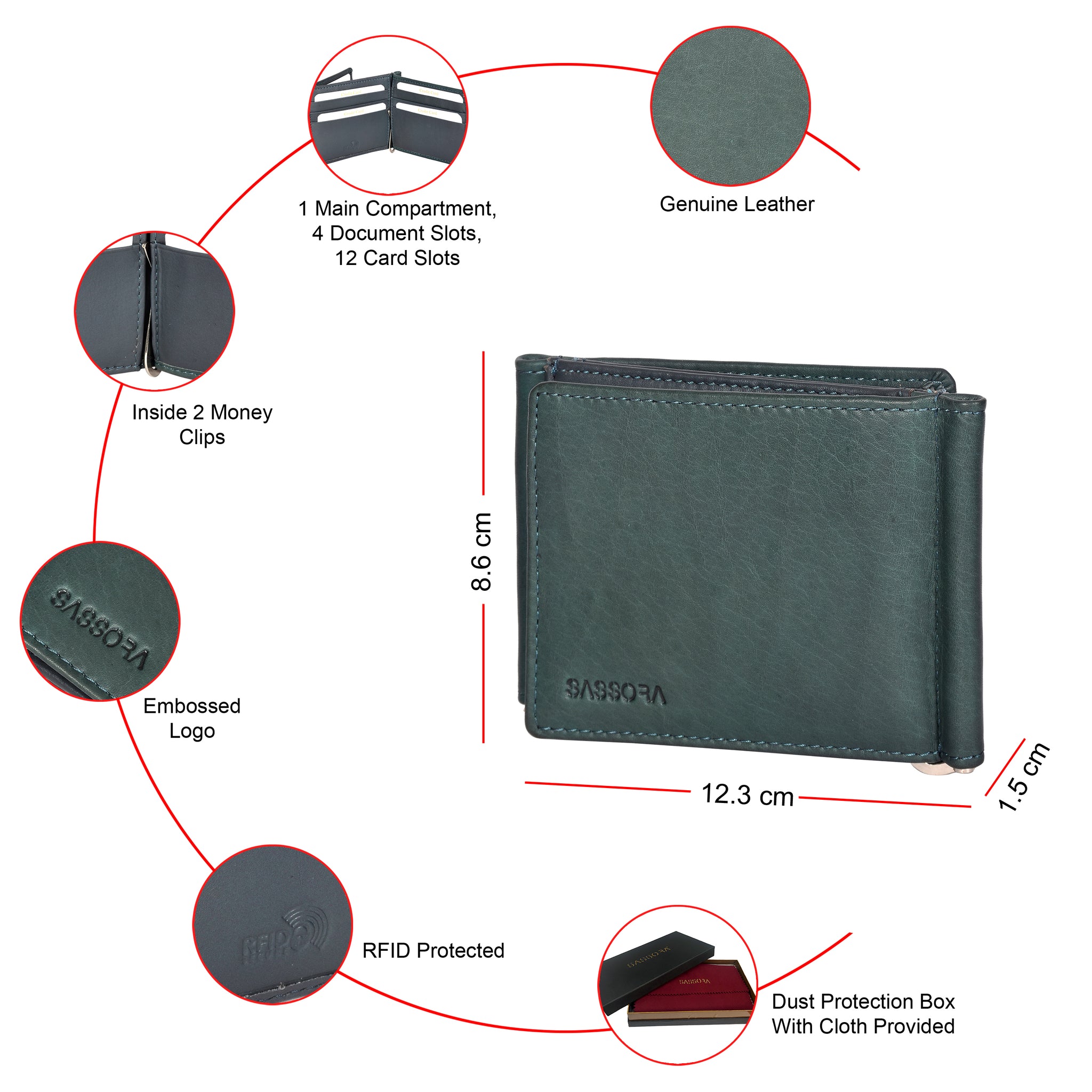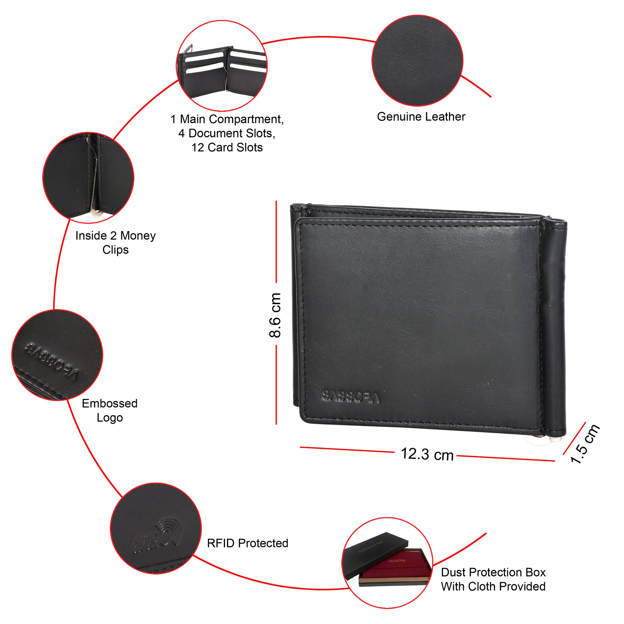 • Sleek Branding: Features an elegant SASSORA embossed logo on the front.