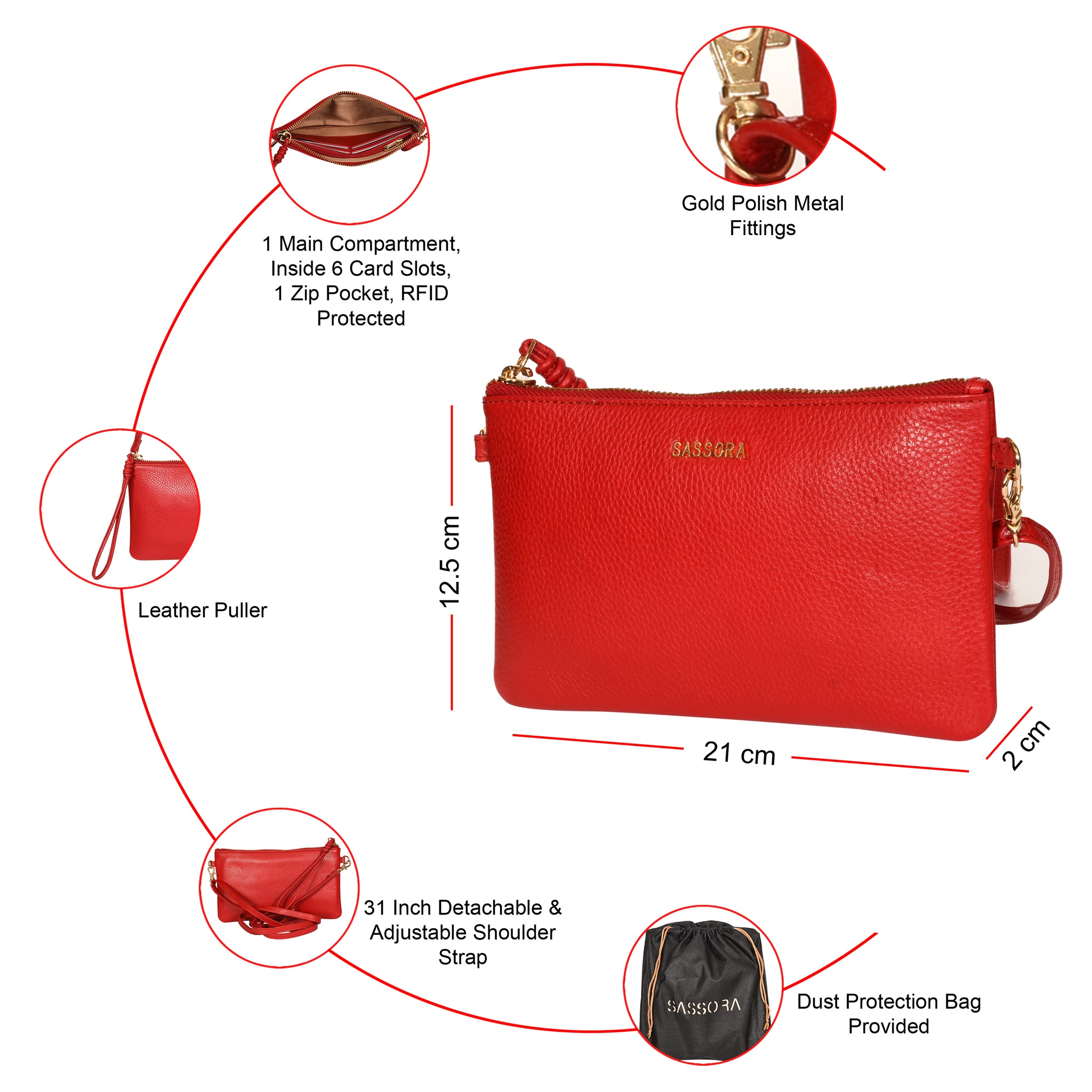 The Sassora Medium Women Sling Bag is the perfect combination of elegance and functionality. Crafted with premium genuine leather, this versatile bag can be used as both a clutch and a sling bag, making it an ideal accessory for any occasion. With its sleek design, gold polish metal fittings, and ample storage, it's perfect for everyday use while maintaining a sophisticated look.